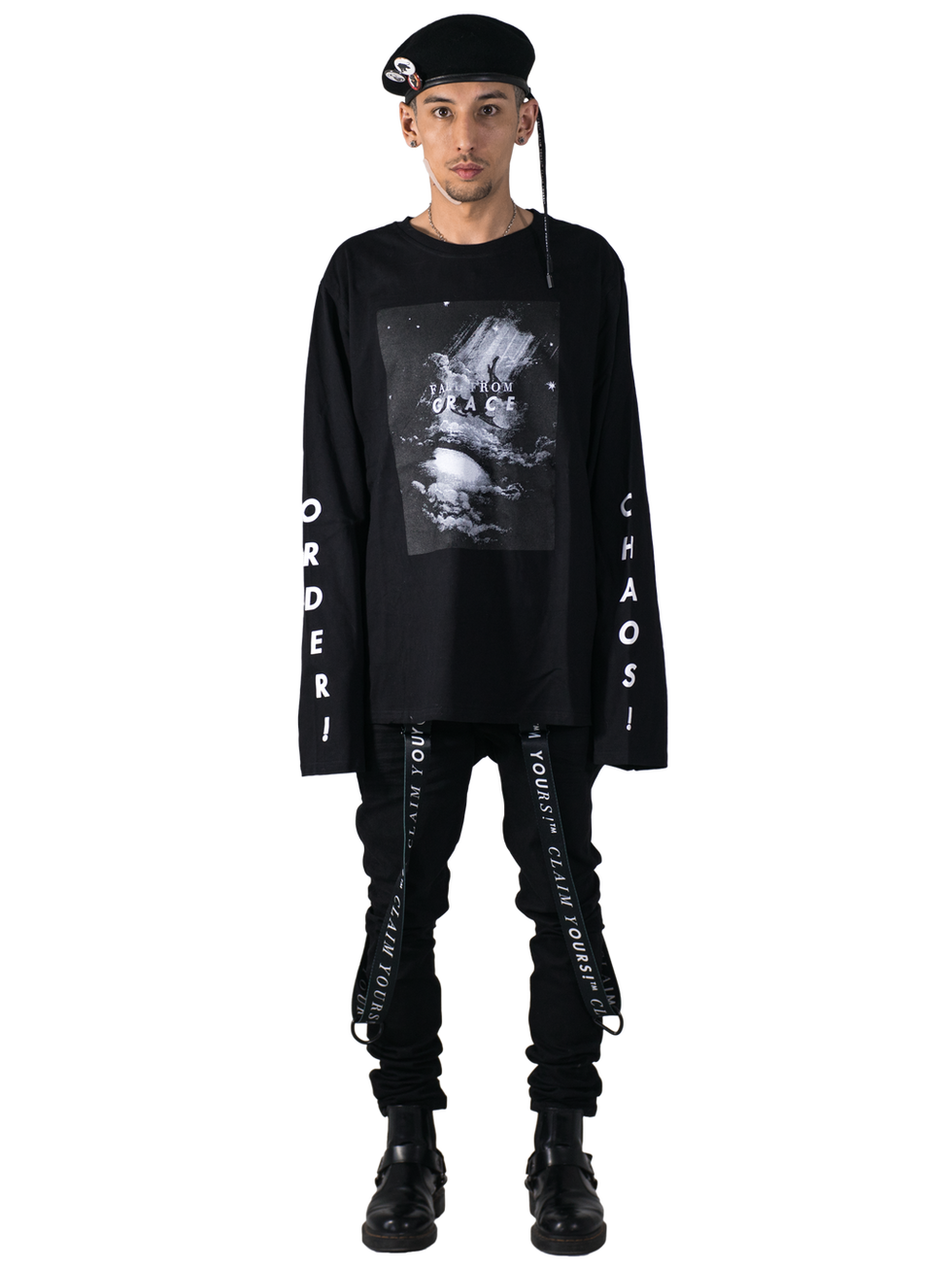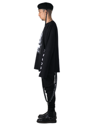 100% cotton. oversized fit, elongated sleeves.